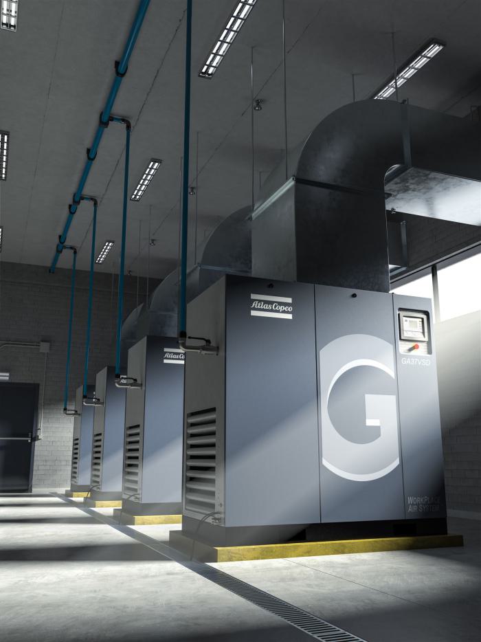 50 % während Investition, Wartung und Ersatzteilbestand ebenfalls enorm begrenzt werden. Der GA 37-75 VSD+ ist der Schraubenkompressor der Zukunft und eine Eigenentwicklung von Atlas Copco.