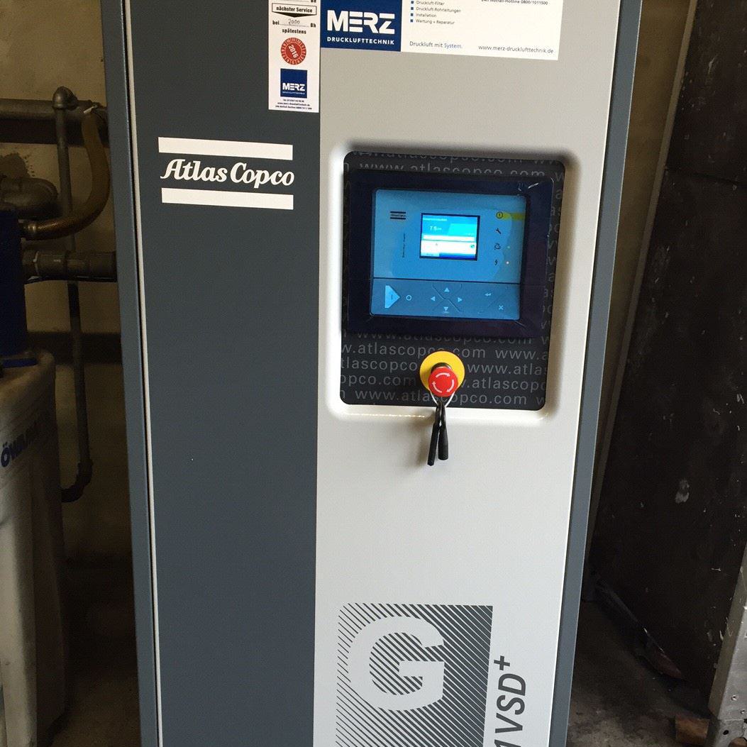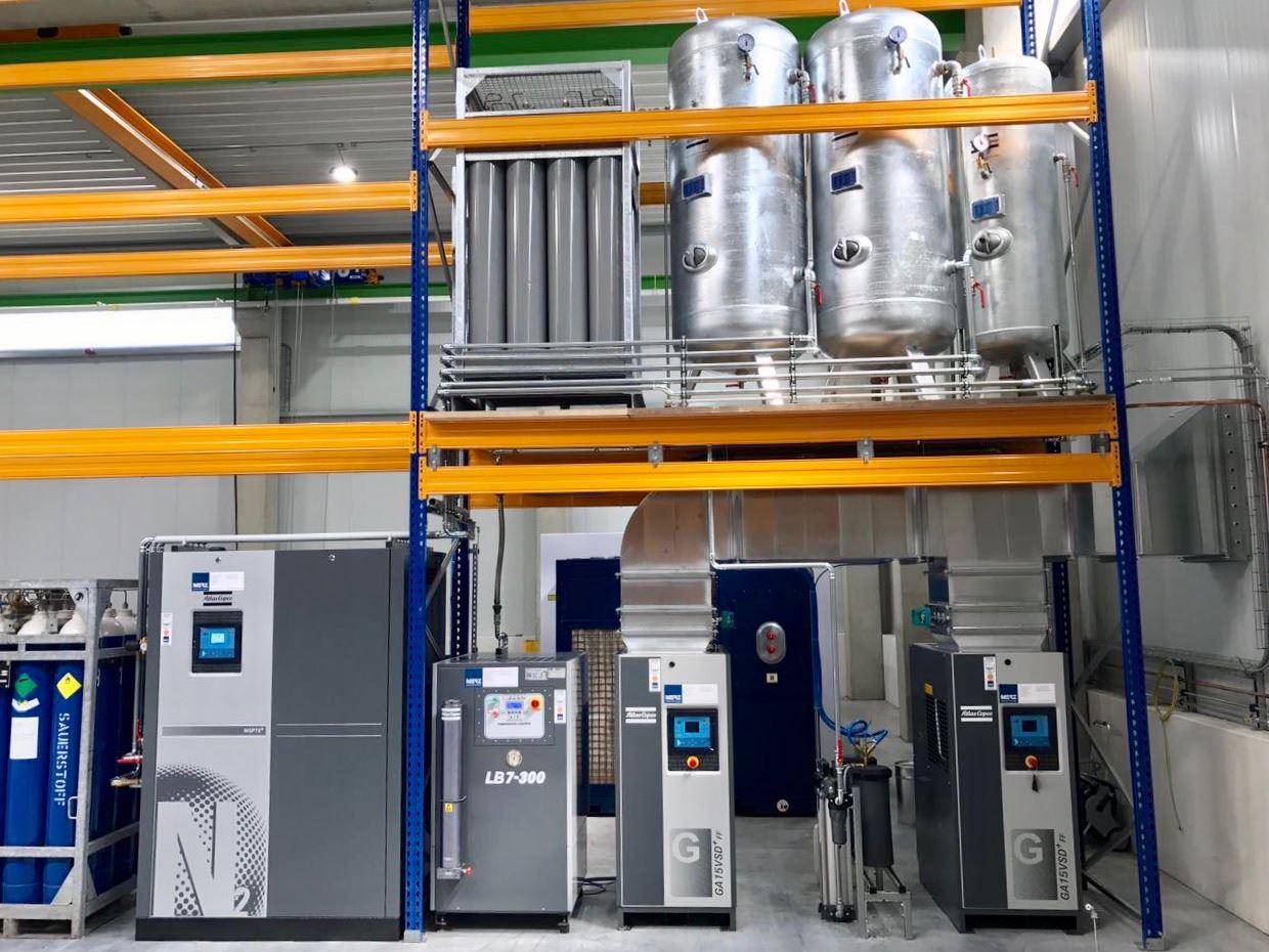 Die Merz GmbH Drucklufttechnik installiert eine Komplettanlage, die aus zwei drehzahlgeregelten Schraubenkompressoren des Typs GA 22 VSD+ FF, einem Stickstoffgenerator NGP 70+ und einem Stickstoff-Hochdruckkompressor besteht.