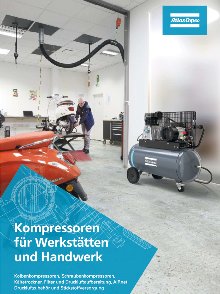 Alles kompakt und übersichtlich. Finden Sie die Druckluftlösung für Ihre Werkstattanwendung auf einen Blick. Das Produktportfolio ist zugeschnitten auf alle Betriebe, die Druckluft bis 30 kW benötigen in Industrie, Werkstatt und Handwerk . Es umfasst stationäre und mobile Kolbenkompressoren, Schraubenkompressoren, Druckluftaufbereitung und Druckluftzubehör.