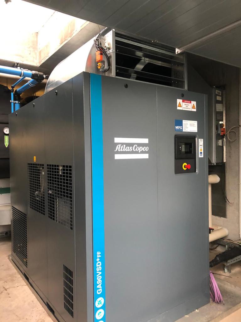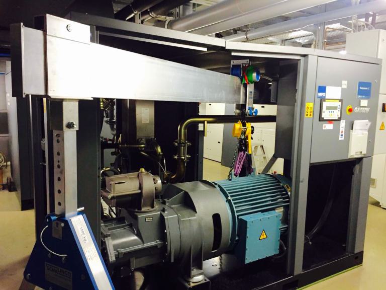 Unser Kunde erhält einen neuen drehzahlgeregelten hocheffizienten Schraubenkompressor GA 90 VSD FF mit integriertem Kältetrockner.