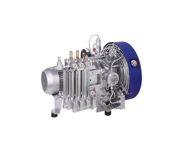 Kompressor 4-stufig, luftgekühlt Öldruckschmierung für Kurbeltrieb und Kolben der 3. und 4. Druckstufe, Hochwirksames Kühlsystem, Hoher volumetrischer Wirkungsgrad, Wartungsfreie Öl- und Wasserabscheider, Mikrofilter am HD-Gasaustritt. Hohe Qualität, robust und zuverlässig Effizient, wirtschaftlich, wartungsfreundlich.